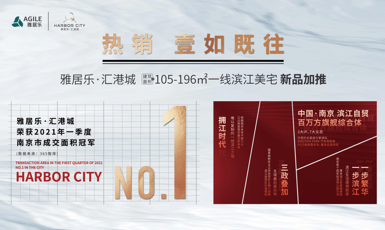 等待,是一场与时间的博弈。所有美好事物的发生,都将经过时间的洗礼。自雅居乐汇港城入市以来,逢开必火,热销已成为一种习“冠”!2021年一季度更登顶南京市成交面积NO.1,再一次印证滨江自贸第一盘的热度!