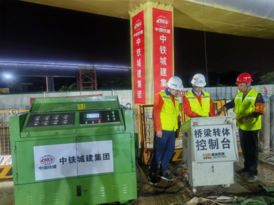 在转体施工前,项目技术团队成立专项实施小组,组织召开了20余次技术交底会议,进行严格讨论、方案评审,对技术方案进行反复论证优化,严格把控每项程序。并于24日进行了5度的预转测试,按照预定方案同步实施技术跟踪,同步指挥操作牵引工作,现场的桥梁测量监控组、安全防护组等对主桥转体速度、转体姿态等情况进行实时监测,对转体前的参数精确检验,并实时调整相关参数,使每个角度都能按照预控到位,确保在正式转体期间精准无误差。