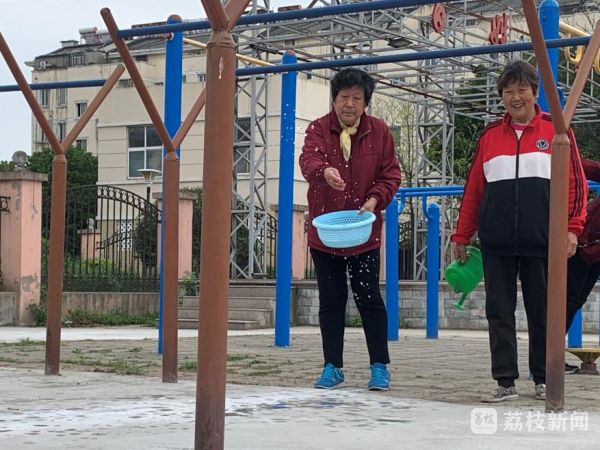 日出时分,空气微凉,泰州市海陵区城西街道兴业小区百姓大舞台旁,两位老人正自发地给公共晾衣架下新铺成的水泥地面浇水,与来往的邻里交谈中不时点赞道:“这下再也不怕蚊虫沾了,解决了我们到梅雨季晒衣难的问题,社区这个事干得真好。”