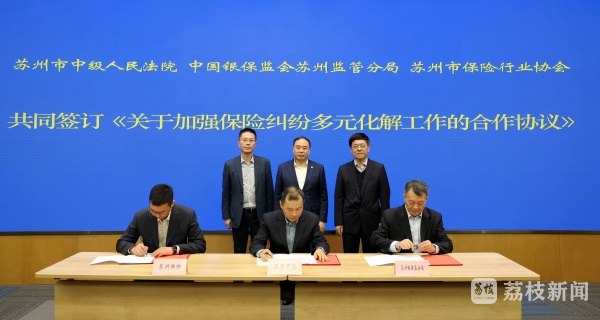 会上,苏州中院、中国人民银行苏州市中心支行、中国银保监会苏州监管分局与苏州银行业协会、苏州市保险行业协会分别签订了《关于加强金融纠纷多元化解工作的合作协议》《关于加强保险纠纷多元化解工作的合作协议》。根据协议,苏州中院将围绕加强分工协作、强化调解组织建设、加强宣传引导、完善金融和保险纠纷多元化解协调机制、健全诉调对接机制、建立沟通会商机制等方面,与各方协作联动,建立健全专业高效、有机衔接、便捷便民的金融纠纷多元化解机制,有效化解金融纠纷,维护金融消费双方的合法权益,推动金融纠纷多元化解机制落地落实、高效运行,促进金融业持续健康发展。