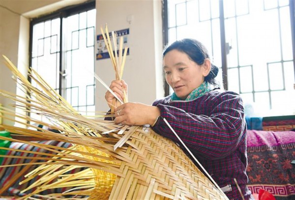 图为山南市洛扎县拉郊乡拉郊村的村民在编制竹器。