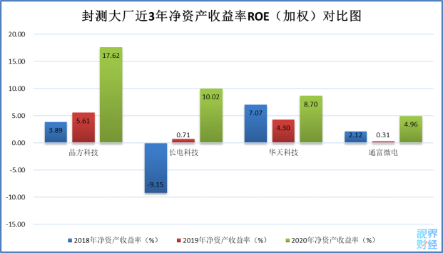 一是ROE偏低。归母净利润高增,但2020年通富微电加权平均净资产收益率4.96%,远低于其他封测大厂,仅为行业龙头长电科技的一半,具体如图: