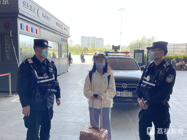 4月29日中午10时许,南京市公安局特警支队武装巡逻一大队民警在南京南站定点巡逻时,发现一名女子在广场一侧哭泣,表情十分焦急。民警立刻上前安抚其情绪,并询问具体情况。