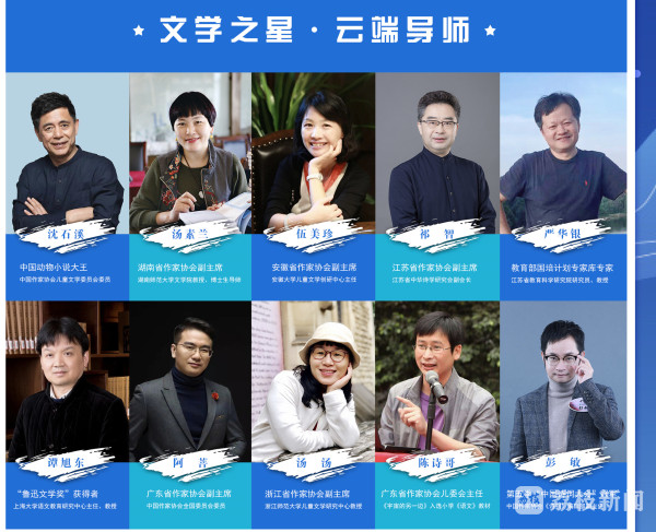本次活动云端导师团除了沈石溪、汤素兰、祁智、阿菩、汤汤、陈诗哥、彭敏等七位往届参与过的著名作家以外,安徽省作家协会副主席、“知心姐姐”伍美珍,“鲁迅文学奖”获得者、上海大学语文教育研究中心主任谭旭东教授,教育部国培计划专家、江苏省教育科学研究院严华银教授也倾情加入云端导师团。无比热爱儿童文学事业的他们更希望中国的少年儿童能够用文学去装备自身。线上讲座,云端指导,无疑是传播、扩大其影响力的有效途径。