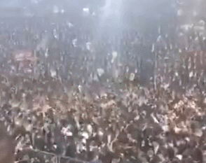 画面显示,事发现场一片混乱,警方正努力将人群疏散,以便救护车进入现场。事件发生前的一段视频显示,数万人在临时搭建的看台上,随着音乐跳上跳下。