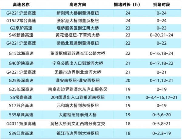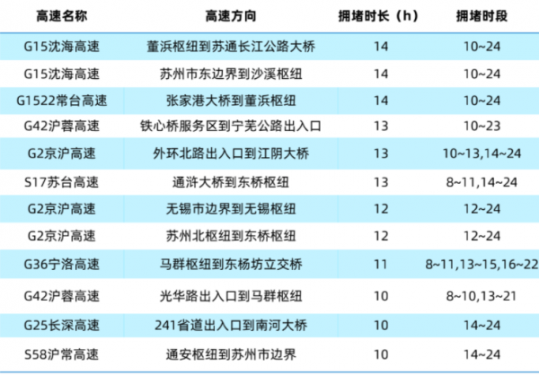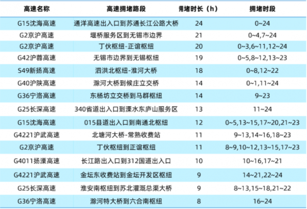 根据高德地图交通大数据预测,“五一”期间江苏省返程5月5日(小长假最后一天)易拥堵缓行的高速有G15沈海高速、G2京沪高速、G42沪蓉高速等高速的部分路段;建议行驶到以下路段的车主时刻注意路况,及时躲避拥堵。