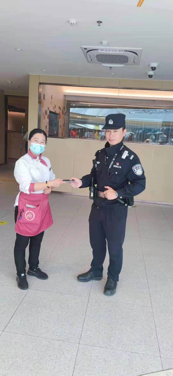 “喂,大丰区公安局金丰警务站吗?我是大丰区某广场一家火锅店的员工骆某,刚才在上班路上捡到一部手机,请你们帮忙查找失主。”4月30日上午9时许,大丰区公安局金丰警务站的值班民警王荭鑫接到群众的求助电话后,立即赶到现场处理。