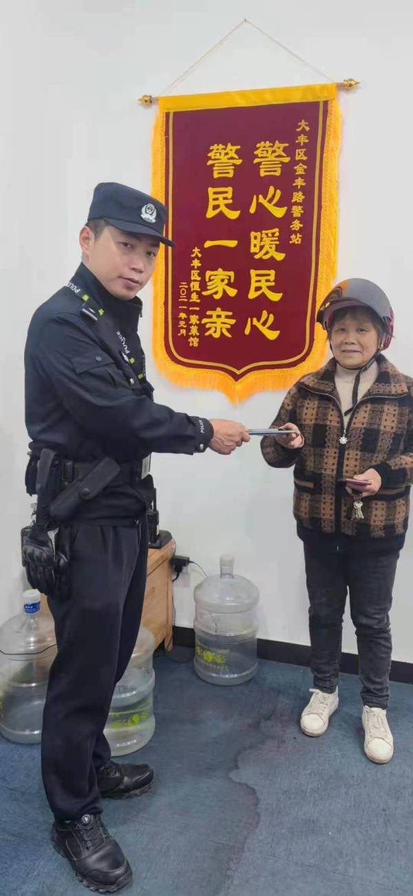 “谢谢警察同志!谢谢拾金不昧的好心人!太谢谢你们啦!”见到老公陈某失而复得的手机,丁某兰非常激动,一个劲儿对民警表示感谢!
