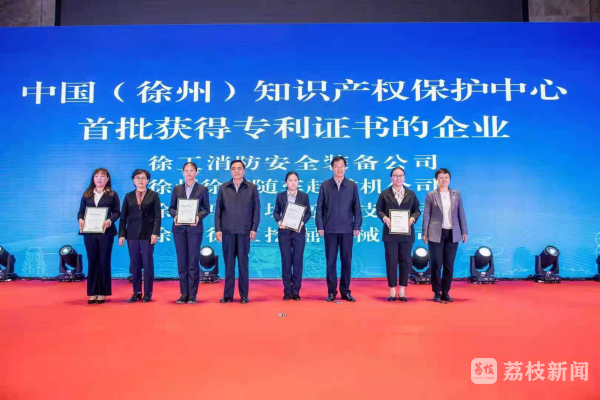 揭牌仪式现场,国家知识产权局副局长周晖国向徐州、南通两地首批通过知识产权保护中心快速预审通道获得专利授权的7家企业颁发了专利授权证书。