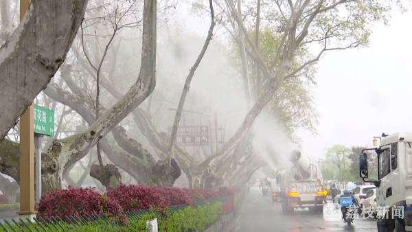 为了减少春季飘絮,2020年11月底到今年初,南京园林部门对太平南路、长乐路、中山北路等5条道路1238株法桐行道树进行修剪,取得了不错的效果。除了修剪,从4月份开始,园林绿化部门就加大了机械车辆使用频率,利用高射程风力车和高空喷雾车将果絮吹落。