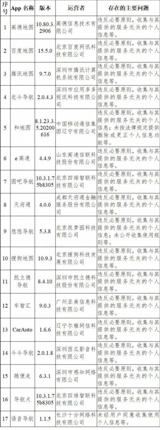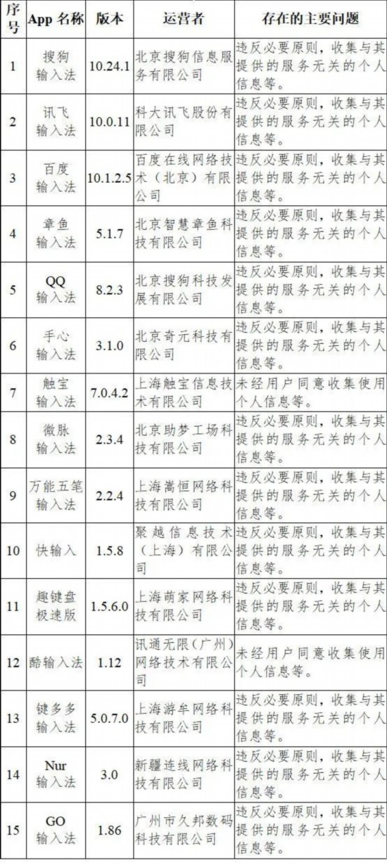 据中国网信网消息,近期,针对人民群众反映强烈的App非法获取、超范围收集、过度索权等侵害个人信息的现象,国家互联网信息办公室依据《中华人民共和国网络安全法》《App违法违规收集使用个人信息行为认定方法》等法律和有关规定,组织对输入法、地图导航等常见类型公众大量使用的部分App的个人信息收集使用情况进行了检测。现将有关情况通报如下: