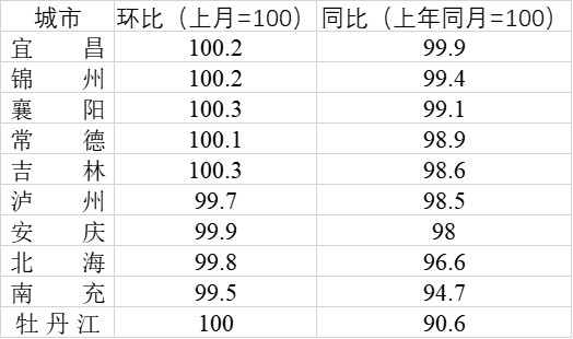 今年3月,35个三线城市中,仍有10个城市二手房价格低于一年前,这些城市分别是牡丹江、南充、北海、安庆、泸州、吉林、常德、襄阳、锦州和宜昌,均来自中西部和北部的三线城市。