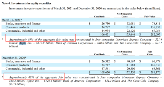 (来源:伯克希尔·哈撒韦2021年一季报)