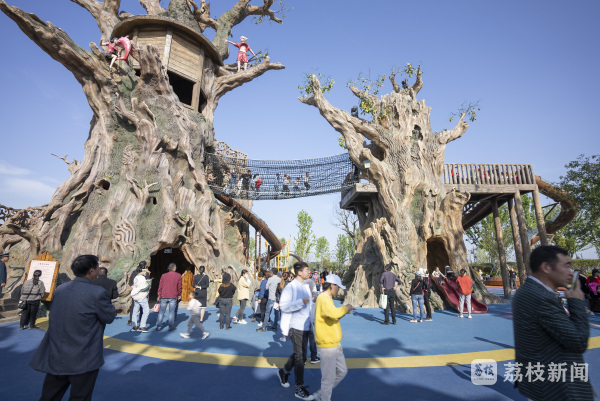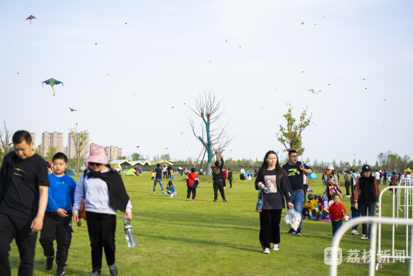 儿童游乐园内,挤满了爱玩滑滑梯和泥沙的小盆友,他们快乐地玩耍着。风筝基地上,错落有致地放置着上百顶帐篷,空中各色风筝飞舞,孩童在草坪上追逐打闹,和家人一起欢度“五一”假期。