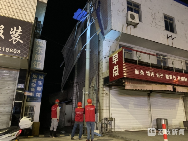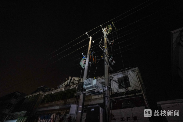 在扬州高邮,抢修也在争分夺秒进行。4月30日晚,在高邮市泰北路抢修现场,据国网高邮市供电公司应急抢修组组长徐华介绍,故障现场有两处导线断落,都是被大风吹起的彩钢瓦割断。“电杆上是双回10千伏线路,我们采取技术手段,对有故障的线路进行故障隔离,提前恢复了非故障区域供电,尽可能缩小停电范围。”徐华说。经过抢修人员紧急作业,直至5月1日凌晨1时40分,断落的导线更换结束,线路全线恢复供电。