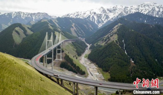航拍连霍高速新疆果子沟大桥。 刘新 摄