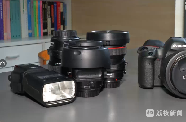 落地书架上最显眼的莫过于这台专业的相机,搭配三四个不同型号的镜头,每次外出考察,周琦都会背着十几公斤重的相机包,他的电脑里存着几万张实景照片,按时间加以归类。