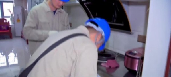 5月5日上午,在兴化市缤悦广场居民楼,供电部门工程人员正挨家挨户为居民验收新近改造的电路和电磁炉。