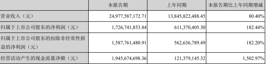依据徐工机械披露的2021年一季报,公司实现营业收入249.78亿元,同比大增80.40%,一季度市场需求较为旺盛,销售收入增长显著;归属于上市公司股东的净利润17.27亿元,同比大增182.44%,具体如下: