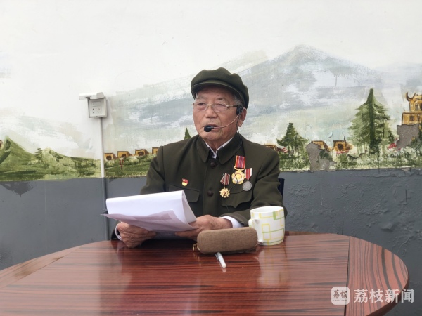 当天,贺思前穿着军装、胸戴军功章,正襟危坐在圆桌前,背景墙上的万里长城巍峨壮丽,五星红旗庄严肃穆。同时,课堂一改以往灌输式的学习方式,在讲述党史故事及贺老参加抗美援朝战争的亲身经历中融入了党史教育,让这场“红色故事会”更有带入感。