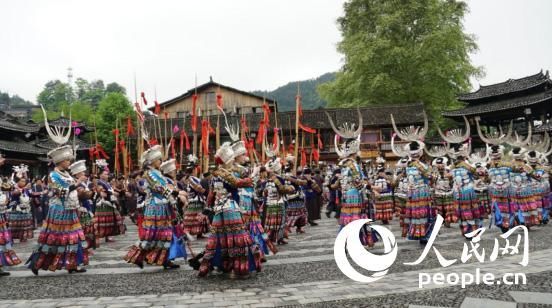 贵州雷山县西江苗寨广场上的表演。人民网记者 李彤摄