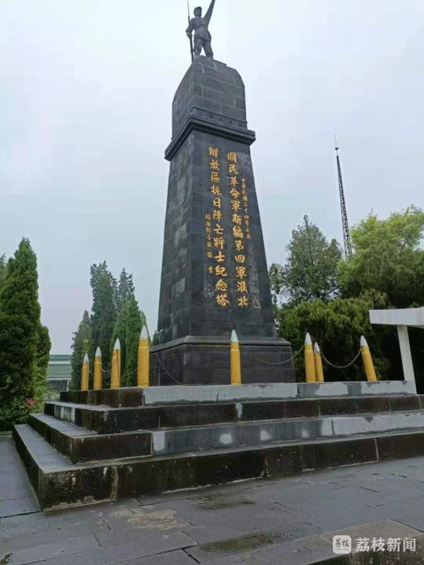 墓园内竖立着一块高约11米的烈士纪念碑塔。碑的正面是时任新四军四师政委邓子恢题写的“国民革命军新编第四军淮北解放区抗日阵亡将士纪念塔”24字楷书大字。
