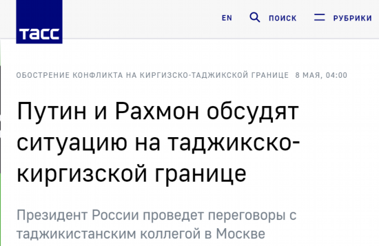 报道还表示,尽管两国总统经常交流并于4月23日进行了电话交谈,但此次双方的议程上仍有许多共同关心的话题,其中主要涉及安全问题。克里姆林宫还称:“(两国领导人)计划就包括阿富汗周围局势在内的地区问题交换意见,并确保塔吉克斯坦与吉尔吉斯坦边境的局势稳定。”
