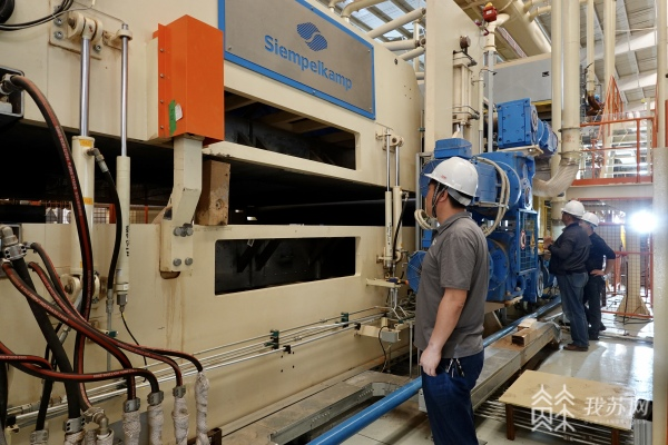 在沭阳县贤官工业园区的亚森路上,有一座十分抢眼的板材生产企业:占地500亩,有13个标准足球场那么大;而走进生产车间,整条生产线的员工不超过20名,德国、瑞士、奥地利等世界一线品牌的自动化、智能化设备正在高效运转……这便是汇鸿亚森公司与贤官镇结对共建、联动发展的主要载体:沭阳亚森同汇实业有限公司“年产40万立方米中高密度纤维板生产线”项目。生产部经理张波波介绍说,目前可生产厚度为1至42毫米、密度为每立方米450至950千克不等的密度板产品,在同行中处于领先水平,“(效率)至少提高了两倍,在当地应该是做得最大的了。”