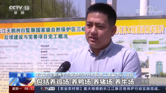 湖北石首市天鹅洲生态旅游经济开发区党工委副书记 徐斌:对沿长江故道的所有养殖场,包括养鸡场、养鸭场、养猪场、养牛场,这一系列的养殖户进行搬迁、整改和拆除,现在基本上旁边源头污水已经得到了100%的解决。