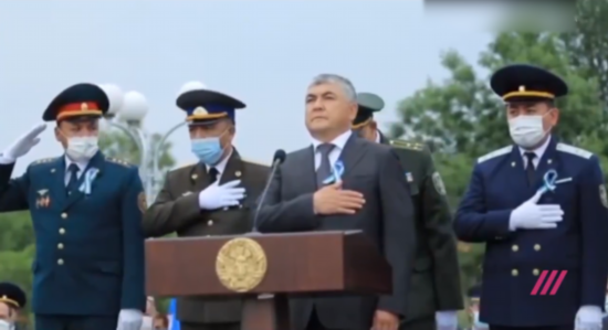 敬礼还是放胸口?据俄罗斯独立电视台“Dozhd”报道,当地时间5月9日,在乌兹别克斯坦锡尔达里亚举行的“纪念和荣誉日”上,几名身穿制服的军官对于听国歌时该如何摆放手势感到困惑。