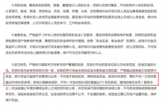但,2019年7月份,教育部等六部门发布的《关于规范校外线上培训的实施意见》(以下简称《意见》)规定,面向中小学生线上培训,按课时收费的,每科不得一次性收取超过60课时的费用;按培训周期收费的,不得一次性收取时间跨度超过3个月的费用。
