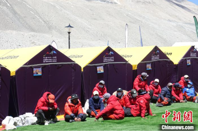 5月9日,登山队员在珠峰北坡登山大本营歇息。 冉文娟 摄
