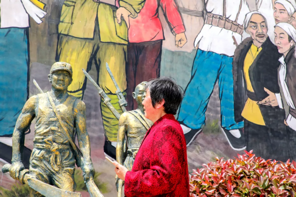 作品完成后,只要天气好,马瑞香就会和老伴儿把自己的很多刺绣作品摆放到广场上来展示,向群众讲解作品的来历、中国共产党的伟大历程,以及传统手工艺的不衰魅力。