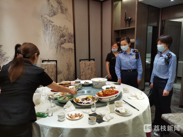 《反食品浪费法》实施了近半个月了,南京市场监管部门对辖区内的餐饮单位开展夜间专项检查,对依然存在食物浪费现象的商家下发了提醒函。5月8日晚,执法人员在一家大型餐饮店检查时发现,有一个包间的客人已经用餐完毕,餐桌上剩余的食物较多。而饭店工作人员发现有检查人员后,慌忙把一盆还剩有不少龙虾的餐盘藏在了餐桌下面,桌上的羊排、木耳凉菜、鸡爪和果盘也有很多剩余。