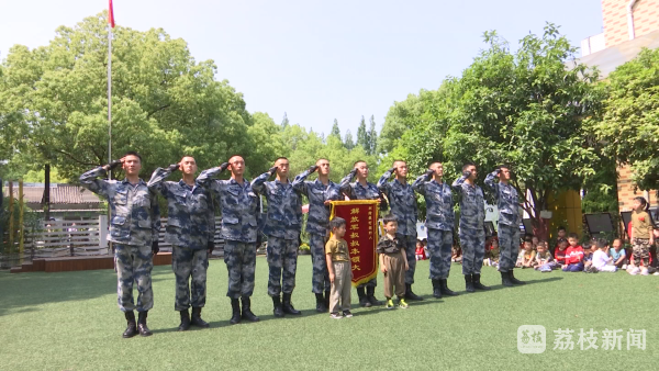 南京太平巷幼儿园园长兼党支部书记汪丽介绍:“我们有一个理念就是孩子在现场中、在真实的感受中去学习,他经历的一切都可能会对他产生影响。所以我们请来了解放军叔叔们和孩子零距离互动,让他去亲身体验互动,真实去感受,让红色基因在他心中生根发芽、代代相传。”