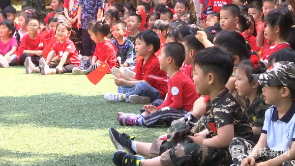 除了军训外,解放军叔叔还给孩子们展示了规范标准的升旗仪式,并且讲述了爱国主义革命故事。