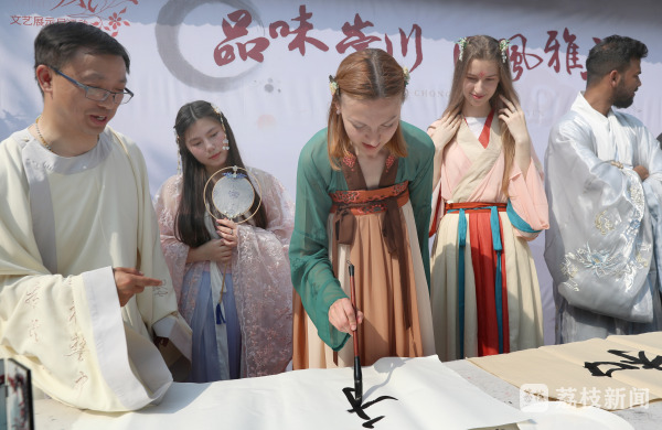 琴棋书画自成风景,笔墨纸砚各展风采。5月10日,“品味崇川·国风雅韵”中外文化交流活动在人文气息浓郁的崇川画院举办。来自俄罗斯、西班牙、印度尼西亚、孟加拉、乌克兰等国家的近20名外国友人穿汉服、学书法、绘宫扇、听古琴,不亦乐乎。