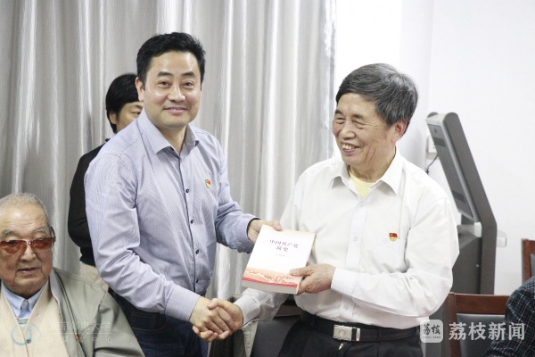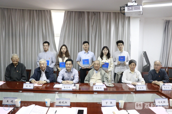 在校歌《信达天下》的背景音乐下,南京邮电大学党委常委、副校长张志华赠予老教师们《中国共产党简史》,到场的老领导、老同志赠予青年师生代表红色校史读本《红绿蓝》。学生代表闫庆昕接过读本时,感慨地说:“从老同志手中接过的不仅是厚重的历史,更是老一辈们对我们青年一代学习党史、报效祖国的殷切期望。”