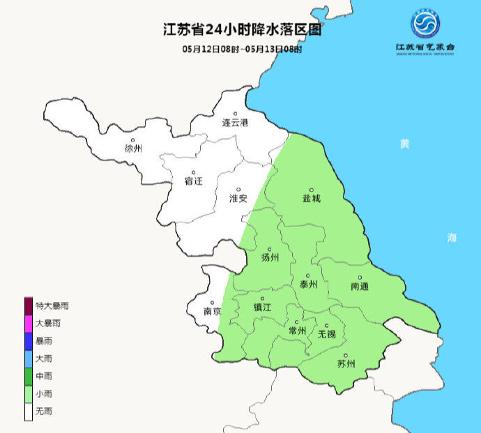 12日沿江和苏南地区阴有阵雨或雷雨,并渐止转多云,其它地区多云到晴。