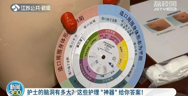 东南大学附属中大医院普外二病区护士长张媛媛表示:“这个患者周围皮肤被我们点上了红点,模仿的是皮肤的炎症,这个患者就出现了皮肤的刺激。我们再转动内侧选择圈到‘皮肤刺激发红’这一项目,这个时候对应起来就是他所适合选择的造口产品。”