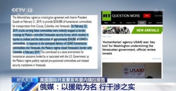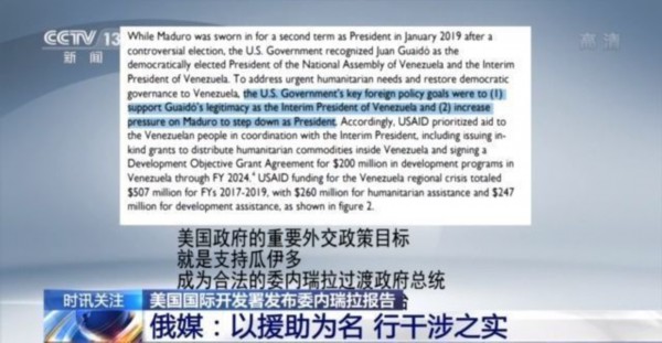这份报告写到:美国政府的重要外交政策目标就是支持瓜伊多成为合法的委内瑞拉过渡政府总统,并对马杜罗加大施压逼他下台。而美国国际开发署的首要任务是确保把物资提供给支持瓜伊多的委内瑞拉人民。2019年1月和2月,美国政府将美国国际开发署提供给委内瑞拉人的援助物资,认定为加强对瓜伊多过渡政府支持和施压马杜罗的“关键工具”。然而对于报告中这些赤裸裸干涉委内瑞拉内政的关键内容,西方主流媒体几乎全部“噤声”,视而不见。