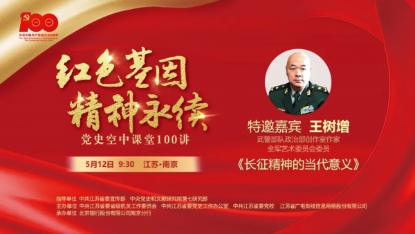 “红色基因·精神永续党史空中课堂100讲”活动由中共江苏省委宣传部、中央党史和文献研究院第七研究部指导,中共江苏省委省级机关工作委员会、中共江苏省委党史工作办公室、中共江苏省委党校和江苏有线共同主办,本期报告会由北京银行南京分行承办。