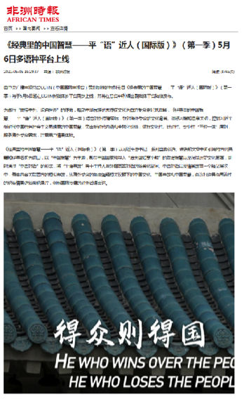 《经典里的中国智慧——平“语”近人(国际版)》(第一季)一上线即引发多家华文媒体高度关注。美国商业新闻网、北欧时报网、日本华商网、欧侨网、葡新报、华人头条、西非在线、非洲时报等网站,以及香港《文汇报》、香港明珠传媒、香港立场传媒、香港观察、粤澳传媒、澳门眀言传媒、大澳热点等境外华文媒体转引转载相关报道。