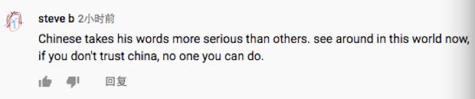 中国对待自己作出的承诺比其他国家都要认真。看看我们现在的世界,如果不相信中国,你还能相信谁。