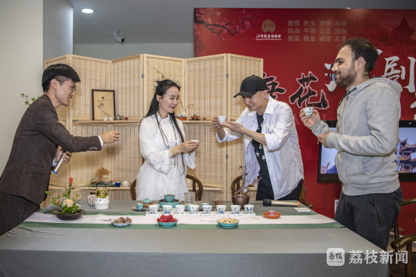 江宁织造博物馆也是《红楼梦》作者曹雪芹的出生地。《红楼梦》中亦有大量茶文化的描写,篇幅广博、细节精微、蕴意深远。因此,主办方特意创新了见面会形式,增加品茶环节,余维刚在茶香中分享了楚剧《万里茶道》中的两段品茶故事,并由此拓展,探讨了《红楼梦》中的茶文化。在《万里茶道》剧中,女主玲珑和男主叶天韬最后对坐品茗,以三盏寓意各不相同的茶为剧情画上了句号。见面会当天,主办方在活动最后也准备了“香茗三盏”,分别向楚剧、中华戏曲和中国茶文化致敬。