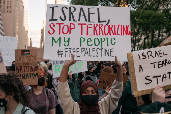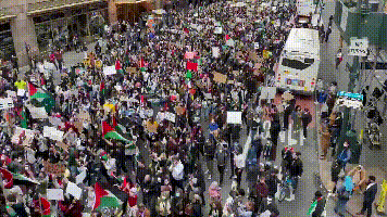 以色列驻美国纽约领事馆外的街道上,有一大批巴勒斯坦支持者高举谴责以色列行动的标语。报道称,尽管这些支持者的规模相对较小,但他们的叫喊声和暴力行为在附近一带引发了不小的骚乱。(海外网 汪晓宇)