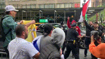 海外网5月12日电据《纽约邮报》、福克斯新闻网等报道,当地时间11日晚,巴勒斯坦和以色列的支持者在以色列驻美国纽约领事馆外爆发冲突,而几个小时前,巴以双方进行了新一轮交火冲突,以色列向巴勒斯坦发动空袭,随后哈马斯向以色列发动了一系列火箭弹攻击。
