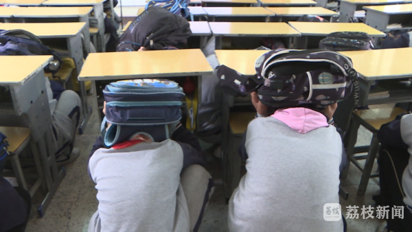 “全体师生请注意,现在我市发生了一次强有感地震,请大家迅速躲在课桌下或其它支撑物下,以书或书包遮头护眼……”在宿迁实验学校逃生疏散现场,伴随着警报声响起,学校4000多名师生在听到校内广播播报地震信息后,立即迅速、有序地从教室内撤离到操场上,进行紧急避险。