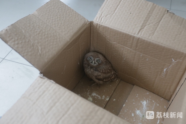 5月6号,在接到辖区居民报警后,南京江宁公安分局土桥派出所的民警立即赶了过来,经过检索、比对,初步确认这就是国家二级保护动物猫头鹰,没有明显外伤。从它的体貌特征来看,羽毛还不丰满,应是初飞阶段的幼鹰,由于捕食能力弱,体力不支而落在地面。随后,民警小心翼翼地将猫头鹰放进纸箱带回所内照料,同时与红山森林动物园取得联系。5月7号,民警成功将猫头鹰移交给红山森林动物园工作人员。