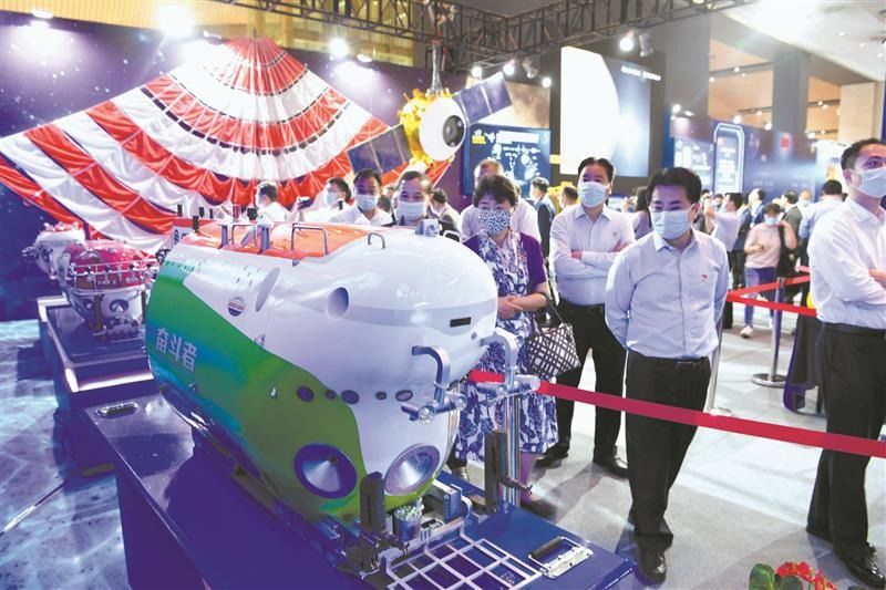 盛大开幕!昨日(12日),为期6天的深空深海重大科技成果展在无锡揭开“面纱”。这次展览是我国深空深海两个领域重大科技成果的首次“同台亮相”。展览中,曾远至月球、下至深海万米的科研成果嫦娥五号、“奋斗者”号模型等展品令观众大饱眼福。我国首次采集到的月壤,和马里亚纳海沟万米级“挑战者深渊”中采集的矿石、海水一并展出。